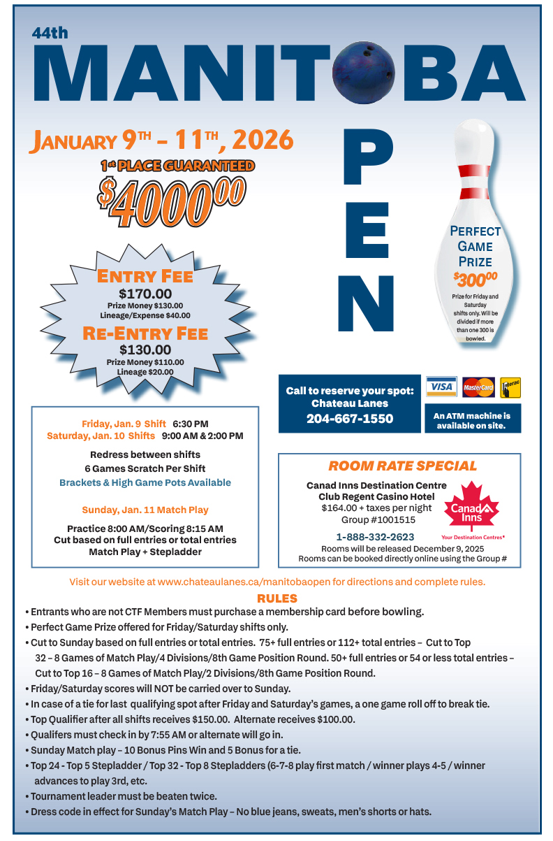 Chateau Lanes 1145 Nairn Avenue, Winnipeg, MB (204)667-1550 |
